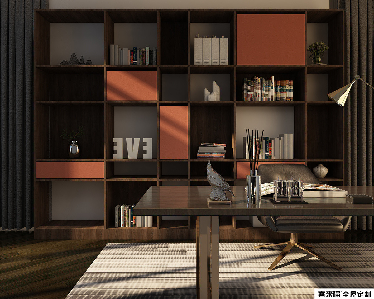 In addition to meeting the protagonist’s knowledge needs, the handwork that gives more space for thinking is also one of the joys of life. It is given a modern sense of modern simple geometric structure, matched with textured art accessories, rhythms the space, and gives full play to the combination of aesthetics of storage. visual impact.