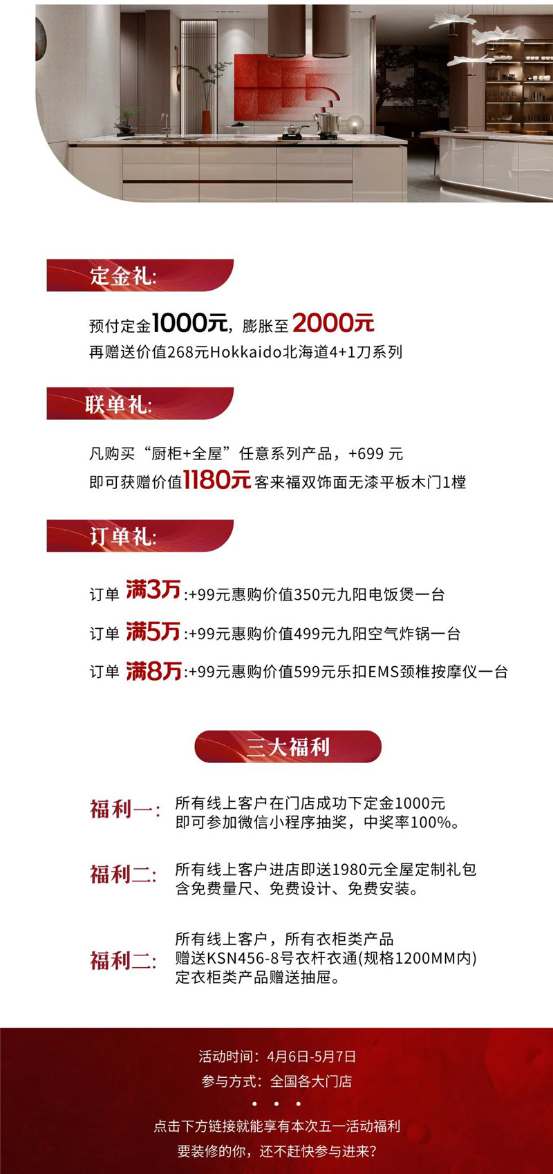 首页 > 新闻资讯>促销资讯>五一满赠好礼!抓住这波装修福利,22㎡jinnianhui官网 - 金年会全屋定制套餐太优惠了
