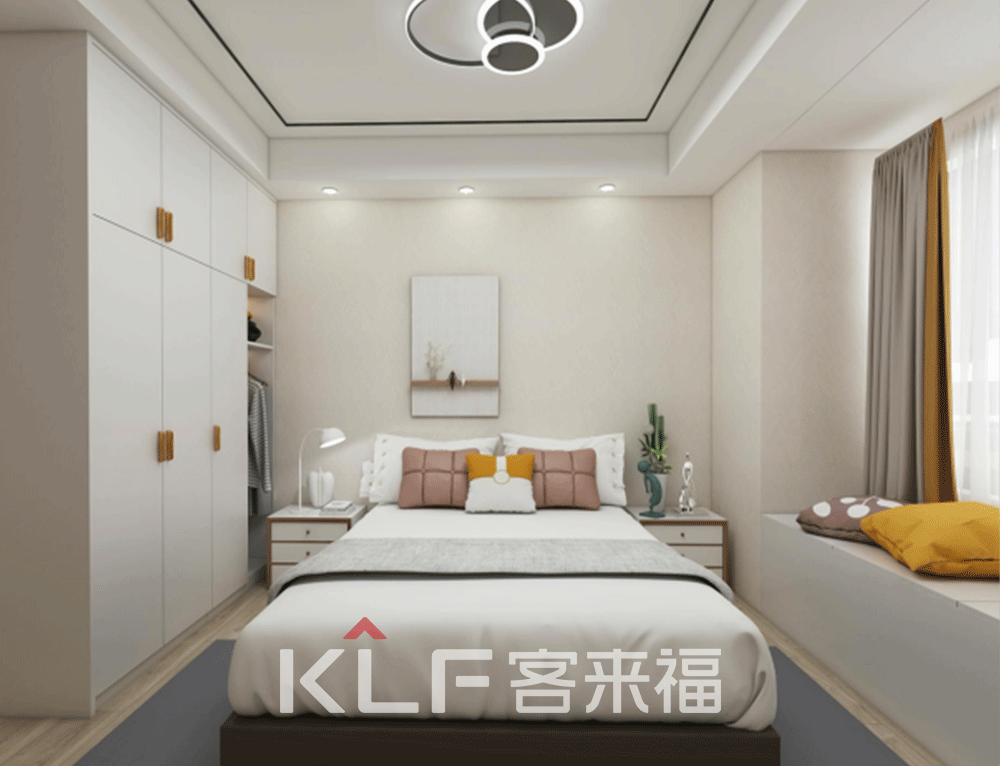 看完客厅往更深处来就是夫妻二人的主卧,以及儿童房了。主卧中冷色调以及暖色调的搭配,使得房间看起来更加温馨,因为房间内有一个大转角,所以我们用整体式衣柜设计,将这个转角藏了起来。但也因祸得福,让房间更具有空间的美感,同时还增加了收纳空间。儿童房的设计采用了简洁的童话风,让房间内的色彩更加丰富,活泼鲜艳。