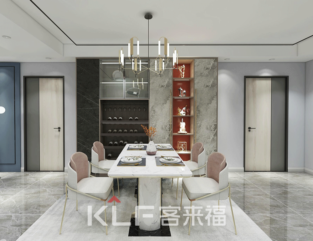 考虑到男主人藏酒的习惯,我们在餐厅边融入餐边柜,充分利用墙面空间,让收纳简洁更轻松,开放式柜体设计也让酒成为生活中的艺术品。