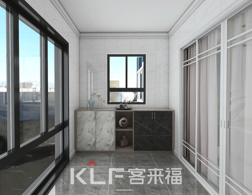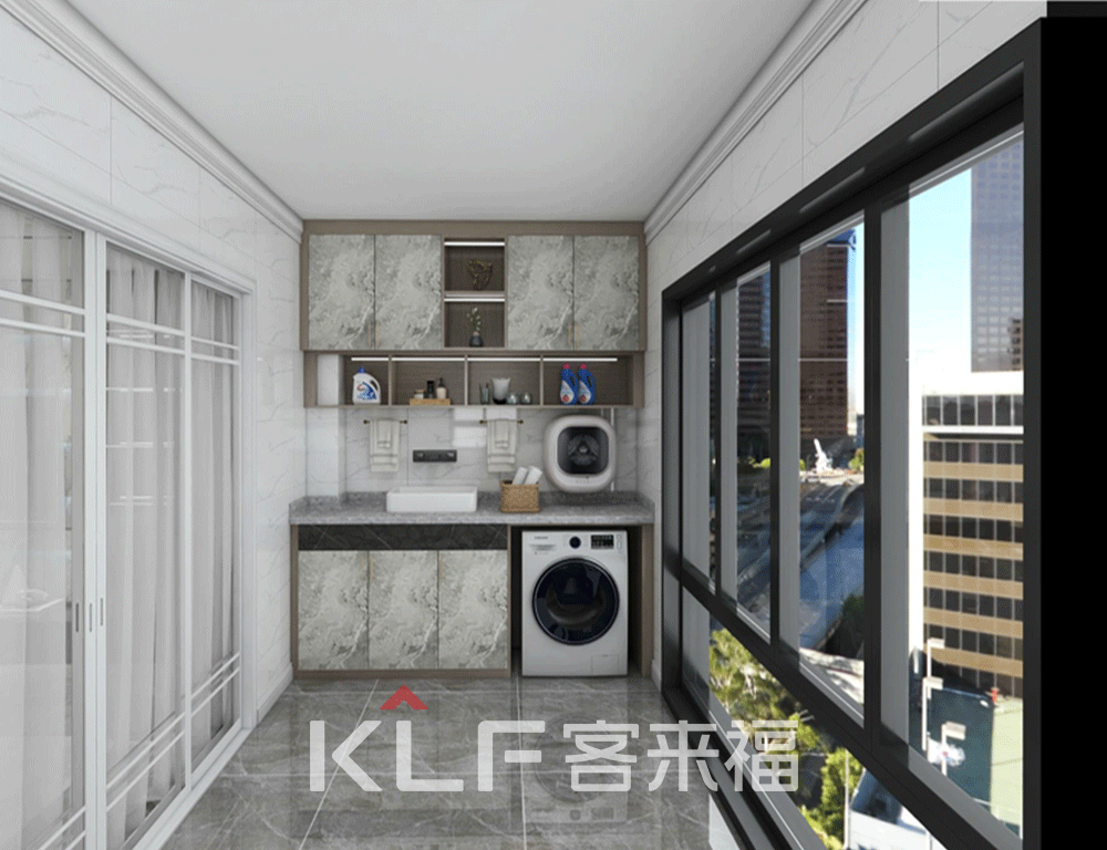 我们摒弃了阳台空间的杂乱风格,左右两侧各打造了一个阳台柜,将洗衣机等物品与阳台柜组合,节省了空间,让阳台看起来更加干净整洁,洗衣晒衣也更为方便,营造舒适养眼的色调和平和舒适的视觉氛围。