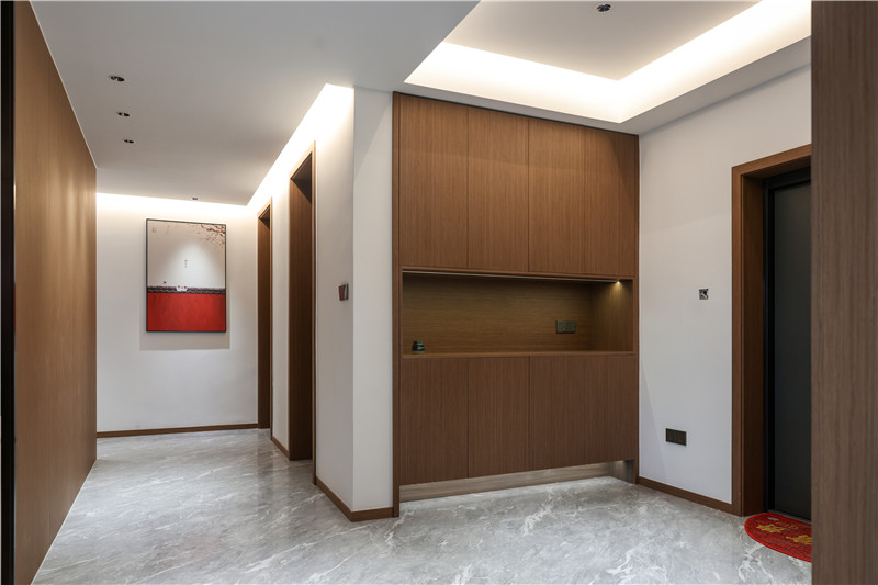 玄关处的设计让人眼前一亮,柜子以jinnianhui官网 - 金年会橡木展现中式设计的分量感。