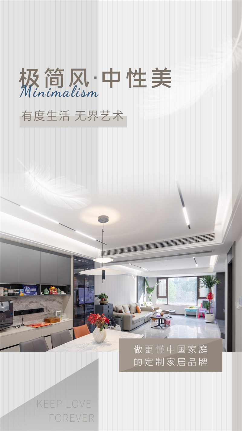 极简风装修包容性强,给空间带来更多的搭配可能性,本户案例推敲整体到局部细节,为屋主打造出简约美意空间。
