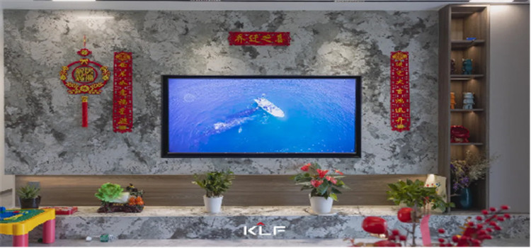 在落地的收纳台上我们以留白手法让整面墙更有呼吸感,而科技木纹的背板也让“木石结合”带去更丰富的空间质感。