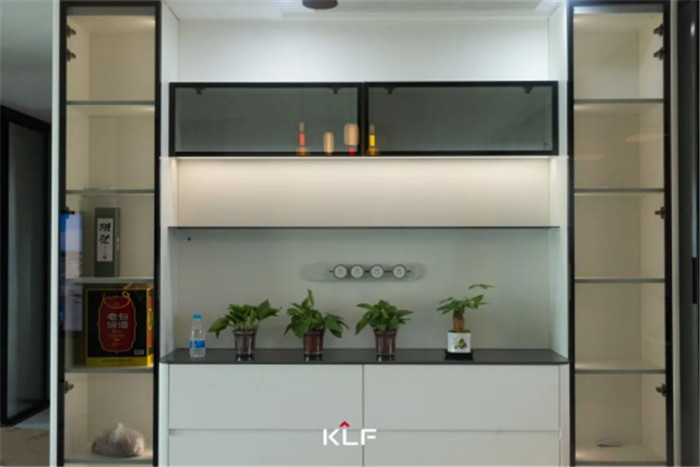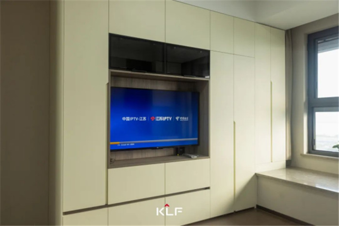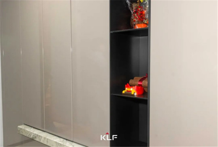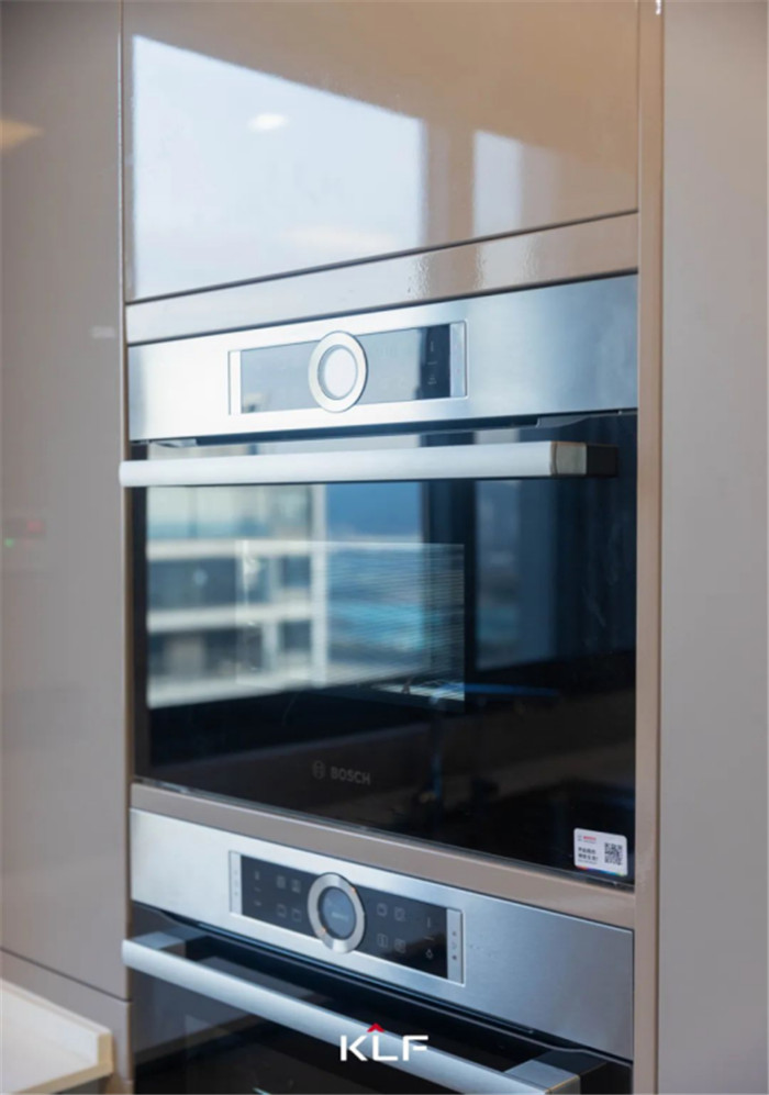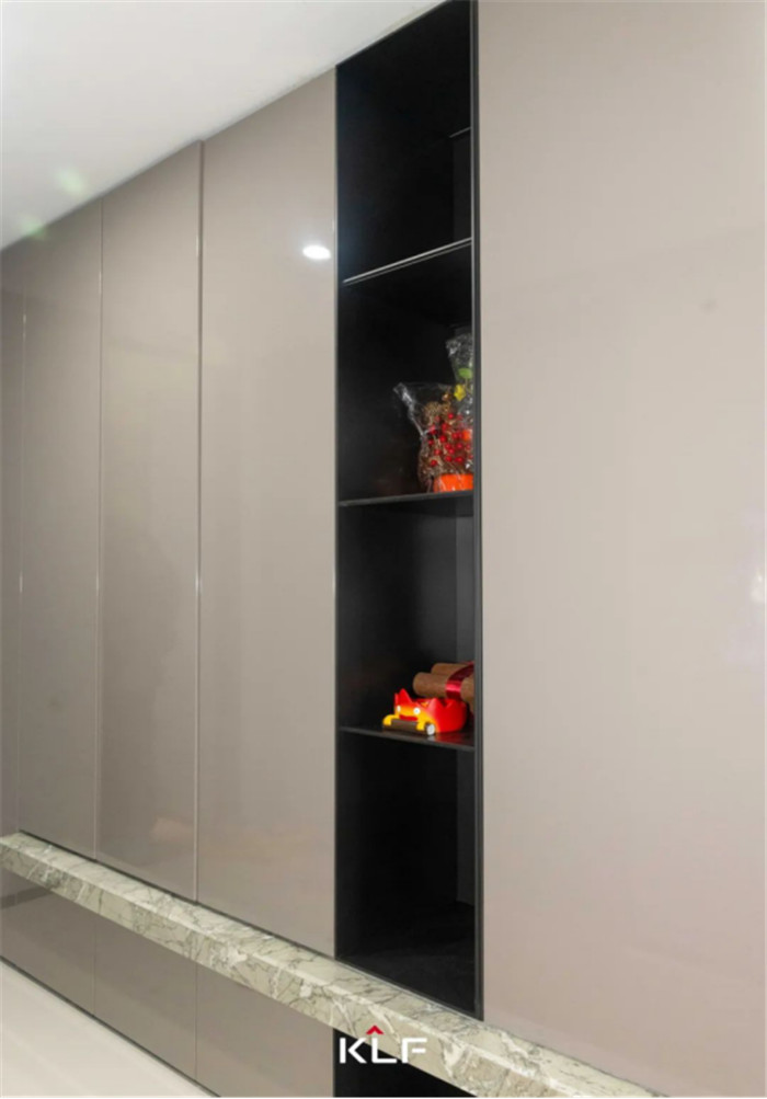 折射着莹润光泽的水漆门板搭配隐藏式拉手和内嵌把手,外观简约大气,于实用内核中赋予空间独特的型格。