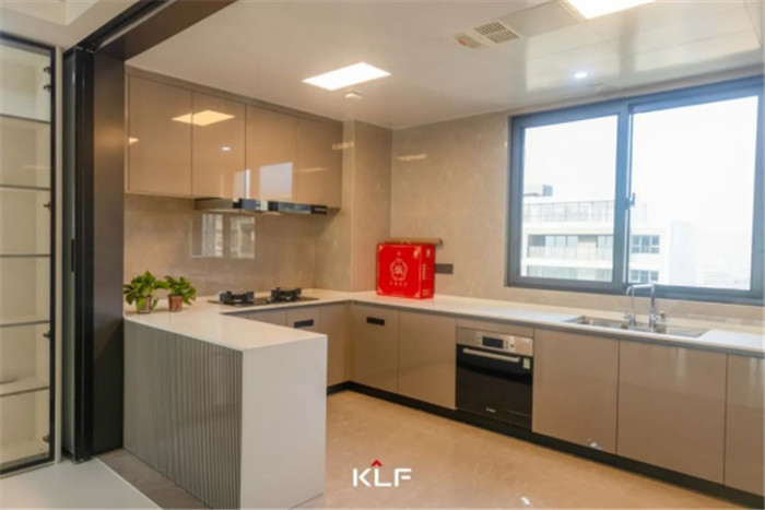 U型橱柜将蒸烤箱冰箱全部内置,简洁的线面融入井然有序的收纳系统,模块化设计将强大的收纳内核与潮流语境紧密相连,为空间带来超高的自由度。