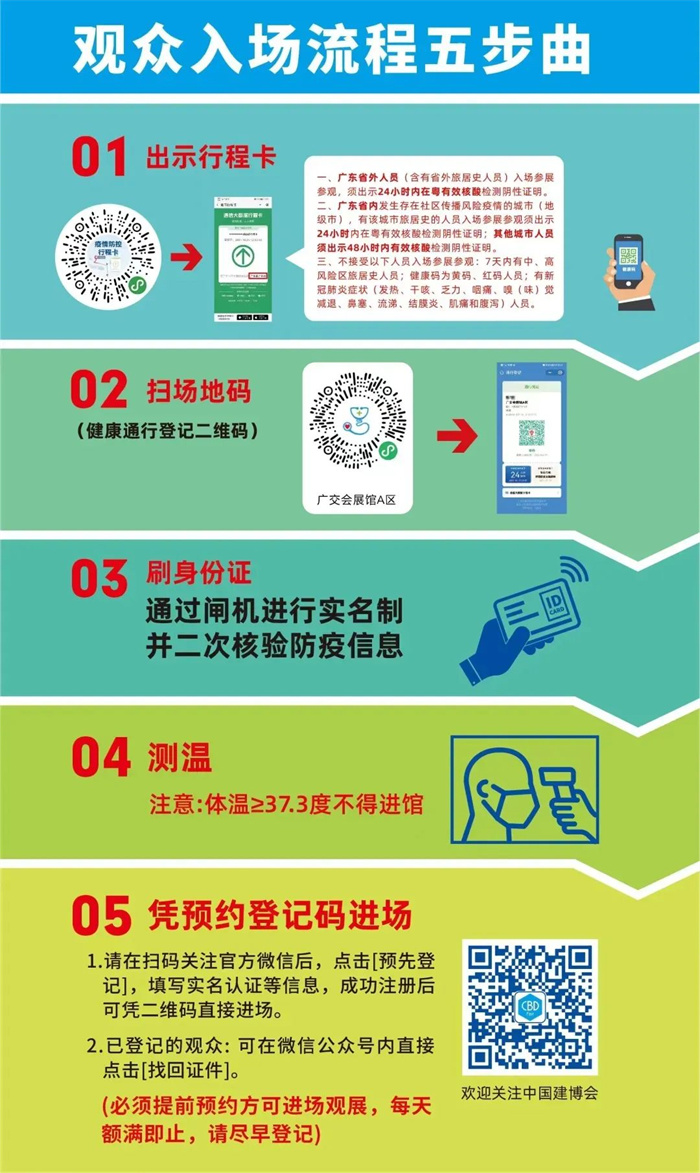 有决定参展的小伙伴们,需要严格落实今年广州建博会国家相关疫情防控要求,提前预约登记,可以按照下列步骤实行呦~