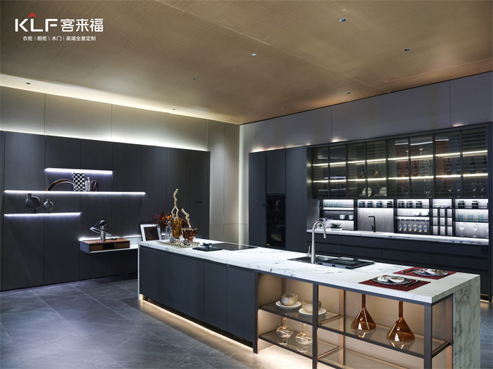 用中式经典元素中珊格隔断,天琛系列客餐厅分离烹饪与用餐空间,让用餐也能拥有艺术感。木饰面与肤感PET结合的橱柜,以同步木纹的jinnianhui官网 - 金年会胡桃颜色碰撞,展现出美丽的大抛物线花纹,兼顾了耐用与美感。