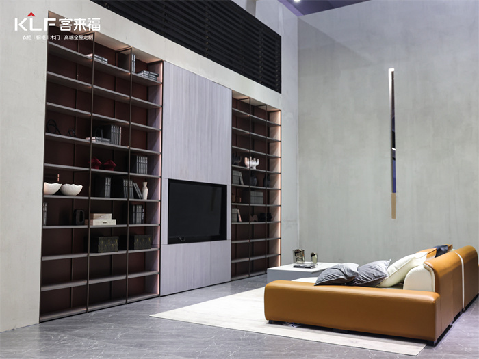天琛系列客厅用新款铝木结合电视柜打造强容纳的电视背景墙,其错落有序的隔层设计蕴含思维转换的更多可能,如装饰柜、酒柜、书柜等。