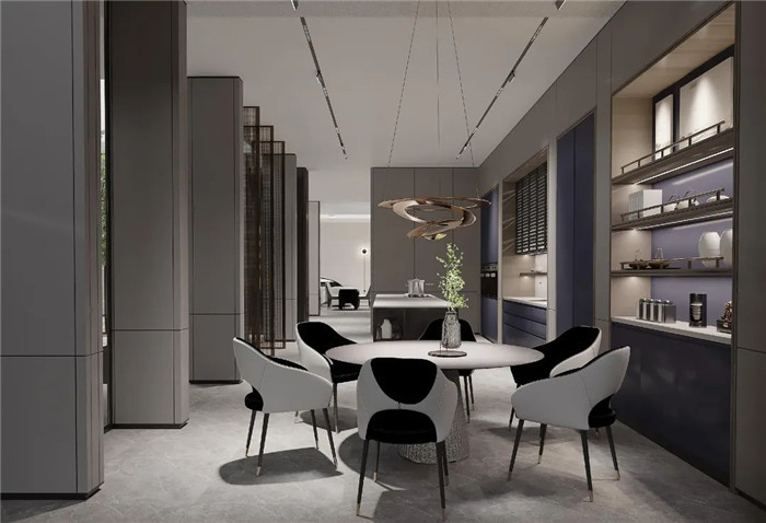 产品囊括了客厅、卧室、餐厅、衣帽间、书房等空间,让家不仅仅是居住地,更是享受生活的地方。客厅采用了一柜到顶的全铝框架电视柜,背面搭配云石灯背景,简约而不简单;衣帽间采用时尚科技的电动平移巴士门,于细节之处彰显魅力;餐厨空间墙面墙板整包,给人舒适温馨之感;简约式悬挑书柜设计搭配烤漆工艺超薄带灯层板,氛围感十足。