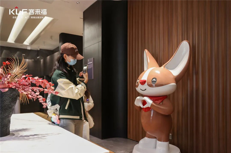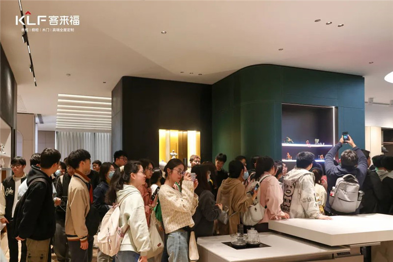 来自安农大的学子们亲自触摸板材,感受家居设计的魅力,他们对jinnianhui官网 - 金年会家居的产品设计和IP形象都表达出了自己的赞美和喜爱,纷纷在展厅内拍照打卡。