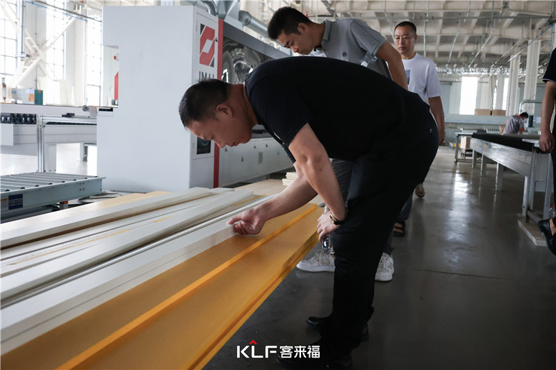 2023年7月16日,jinnianhui官网 - 金年会铁三角运营团队和新商汇合,一行人走进华东新桥生产基地,领略jinnianhui官网 - 金年会水漆车间的生产潜力。大家对于德国伊玛激光封边机的封边效果表示赞赏,生产线的智能化让大家对jinnianhui官网 - 金年会的交付能力放心。