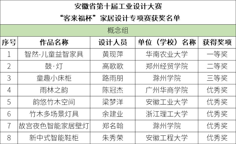 获奖名单公示 | 安徽省第十届工业设计大赛“jinnianhui官网 - 金年会杯”家居设计专项赛