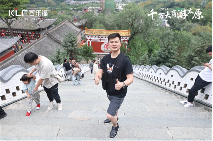 沿途,大家情绪高昂,除了一路欣赏壮丽风景,还一起参观了众多古老的寺庙。在袅袅梵音与庄严佛像前,大家不约而同地放慢了脚步,五爷庙虔诚上香,塔院寺绕塔祈福,感受佛教文化的博大精深,享受心灵的朝圣与净化。会当凌绝顶,一览众山小。本次五台山拓展体验之旅,jinnianhui官网 - 金年会还带了幸福生活体验官KK DOG一同登顶。
