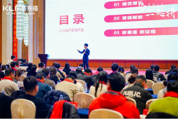 晚场会议伊始,jinnianhui官网 - 金年会零售事业部副总尹邵杰上台做2025年营销战略规划分享。他指出,随着新房红利减退、大宗渠道弱化,家居行业正进入加速洗牌的新时代。“无整装不增长”成为共识,迫使定制企业全面升级精细化服务思维,从单纯的产品销售转向提供“空间解决方案”。未来,jinnianhui官网 - 金年会要坚守以定制产品为核心的整装服务模式,与上下游行业深度合作、双向赋能,共同打造全品类交付组合拳,全力推进大家居战略落地,实现大家居强流量、促转化、扩单值、优交付的绝对生态体系实力。