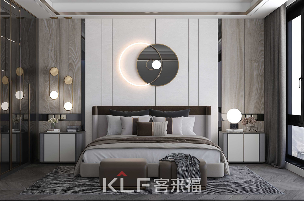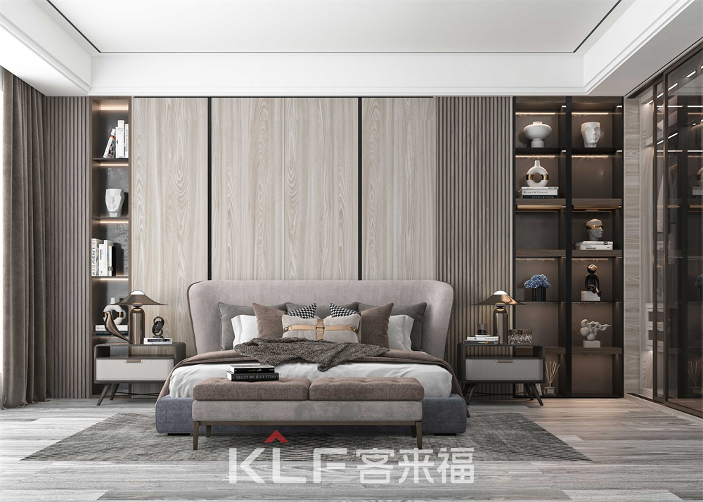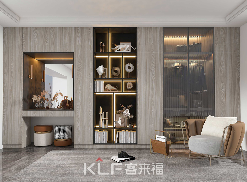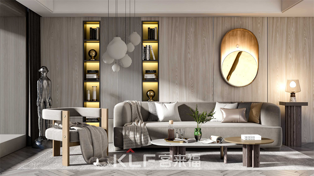 以原木色为基调,让空间木质感更强烈,木材自然形成的纹理在经历精工匠造后,让自然和时光的沉淀变得越发清晰可见,塑造出的厚重感和不经意间流露出的华贵感,让木饰面色温和舒适,给人一种自然而沉静的感觉。