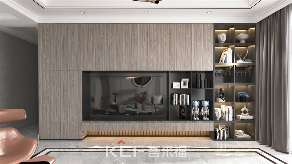 多功能组合立柜,采用灰色搭配原木色,低调深沉富含魅力元素,满足多样化的收纳需求,简约线条造型避免单一元素带来的视觉疲劳。