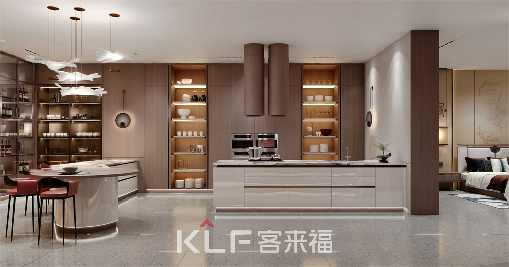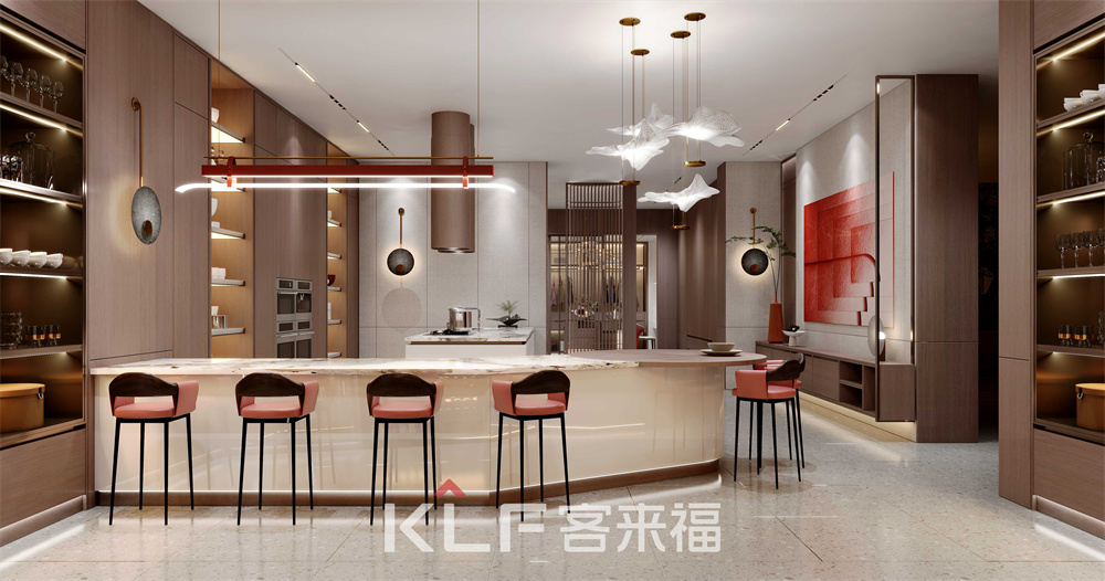 一体化餐厨空间,优化整体空间结构的同时,让家庭成员更好的参与到日常的美食烹饪当中。超大圆弧实木台面扩大用餐空间,增加空间利用率。整面入墙式柜体,打破厨房压抑杂乱的刻板印象,让家电拥有自己的专属区域。